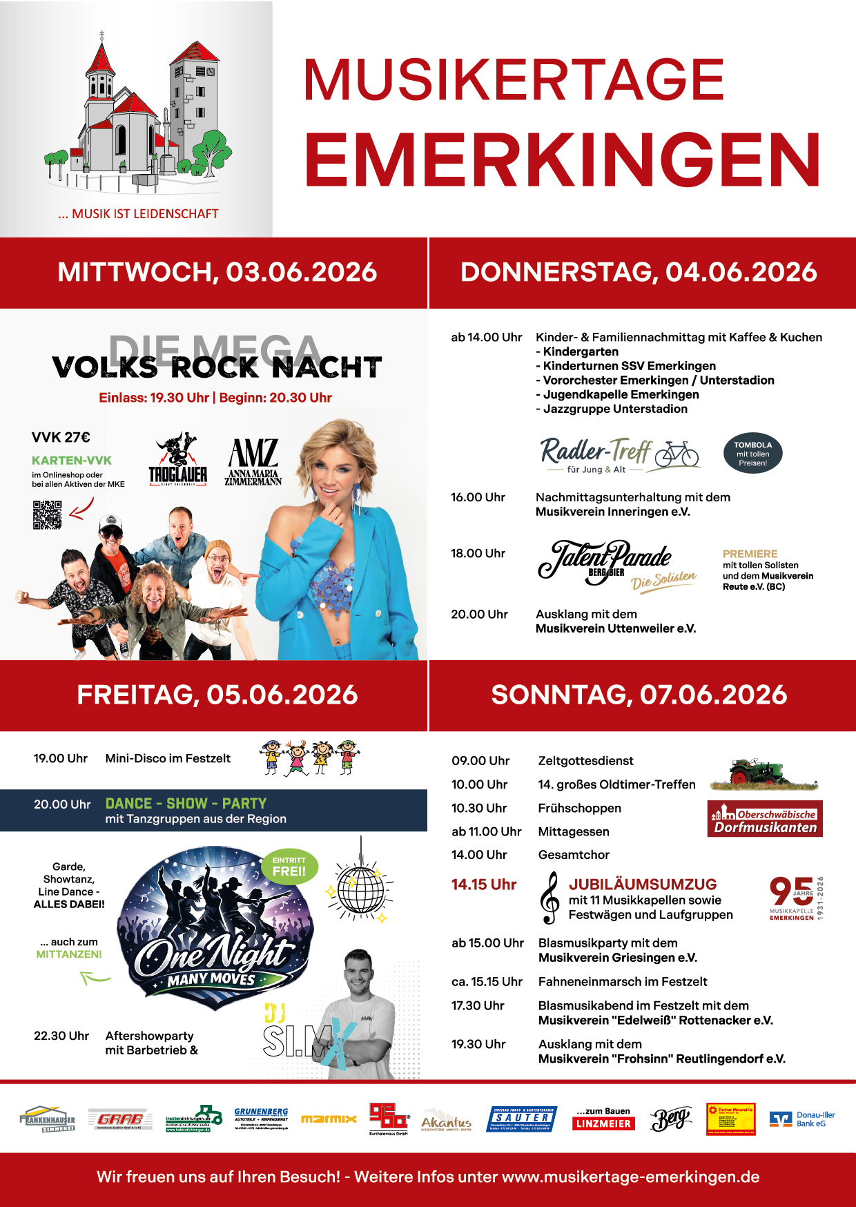 Alternativ erhältlich im Vorverkauf direkt über alle aktiven Musikerinnen und Musikern der Musikkapelle Emerkingen.